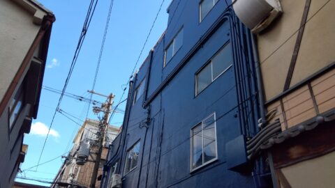 大阪狭山市を拠点に大阪府内で外壁塗装工事を施工しておりますハクユウシャです。いつもブログ閲覧ありがとうございます。12月に入り暖かい日もありますが、やっぱり朝晩は良く冷えます。たまに行くスーパー銭湯のサウナがとてもありがたく仕事の活力になっております。11月も雨漏りの修繕や内装工事の方が前半多くて半ば頃から外装工事も増えてまいりました。1973年(築53年)建築の大衆演劇場が入った建物の北面のみの工事を頂きました。演者様の様に綺麗になるよう職方さんも頑張ってくれました。